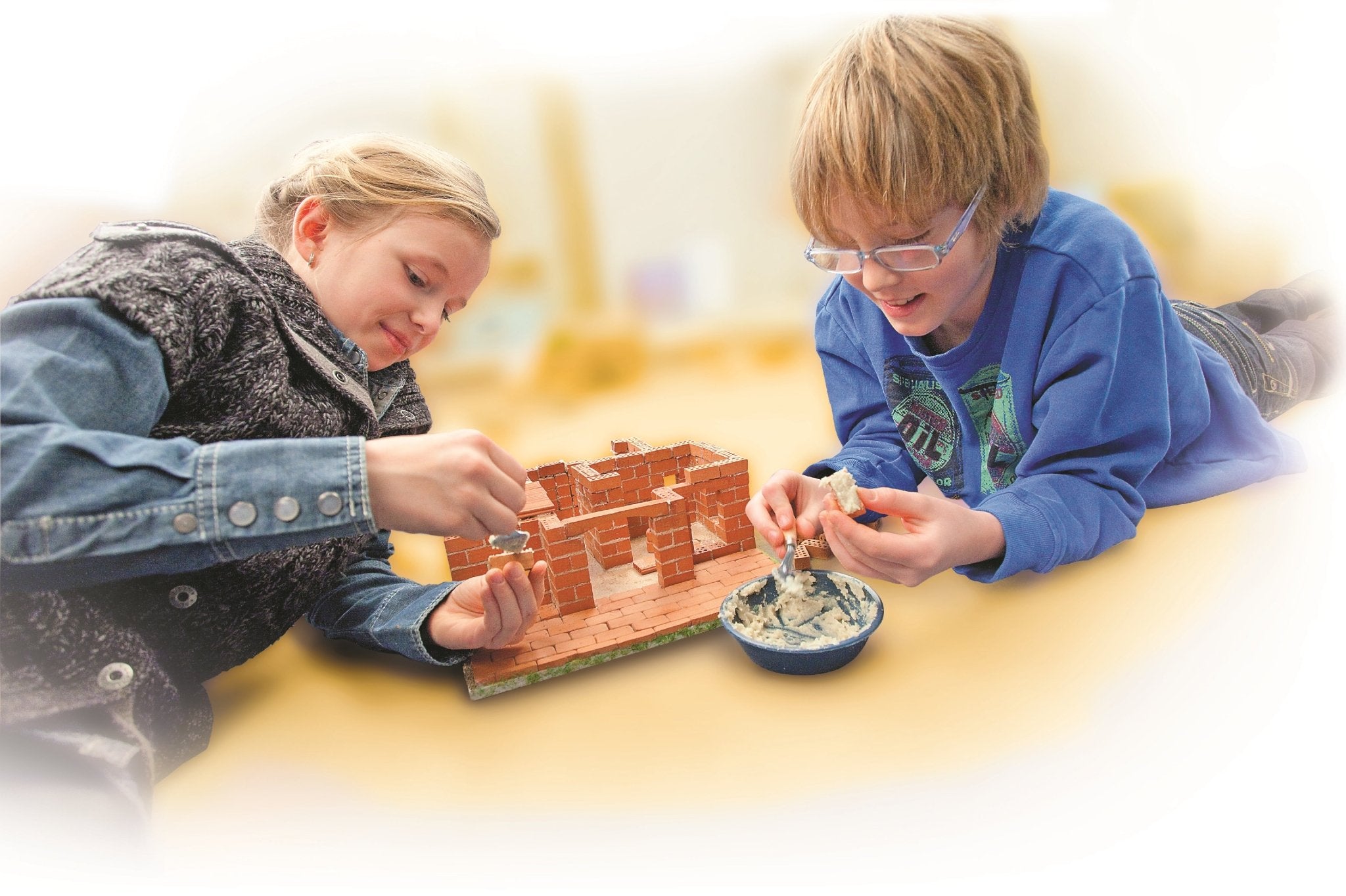 TOTALLY SAFE FOR PLAY: Bricks are made of cooked clay and mortar is based on safe and soluable sand and corn-extract.