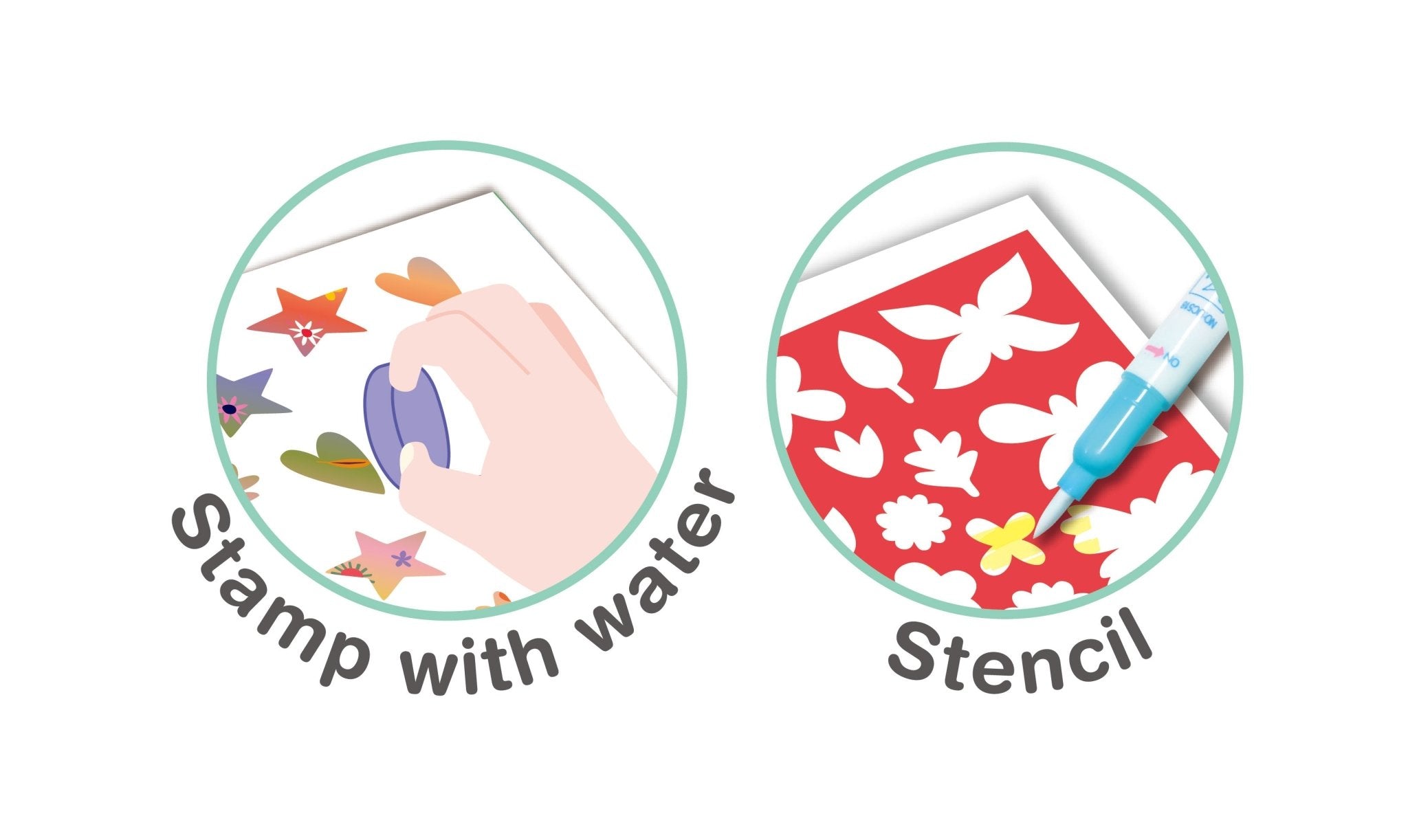 The Magic Water Painting – Forest Animals Book comes with 8 magic water painting pages, a refillable water pen, a reusable stencil and 3 water stamps. There are also some fun games too! Multiple fun activities contained in one book! The Forest Animals book also contains mix’n’match animal fun! To use, fill the water pen with tap water, then draw on the pages to reveal the colours. Then when dry, the colours disappear, ready to start again! With its easy carry handle, the Magic Water Painting Book is perfect for no-mess activities wherever kids go! Ages: 3+.