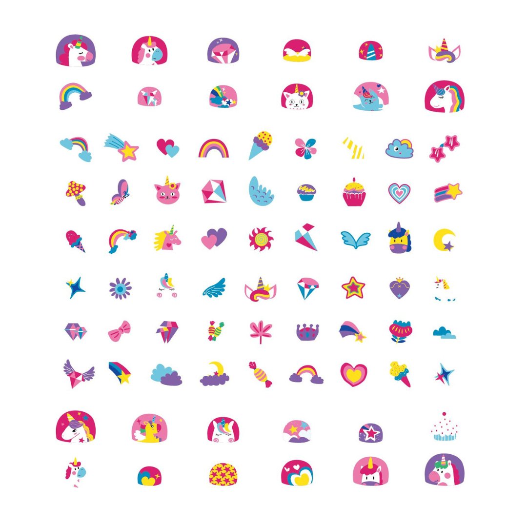 A pack of 78 unicorn themed nail stickers.